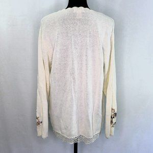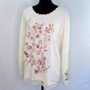 Embroidered Floral & Pearls Ivory Sweater Ramie Cotton 1X Country Door