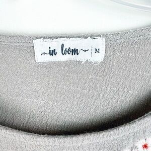 Embroidered Floral Short Sleeve Shirt Top Crop Smocked Hem Boho Medium Cottage