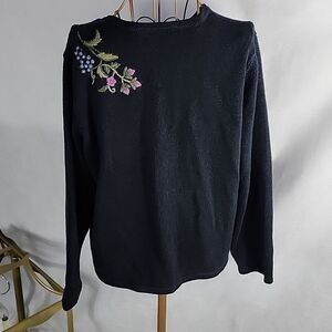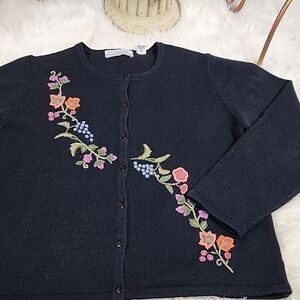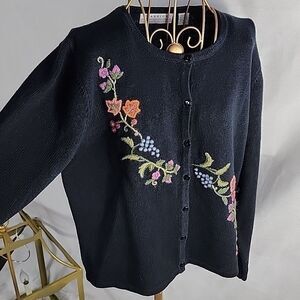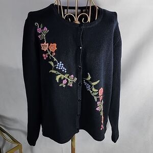 Embroidered Floral & Vine Cardigan Sweater Size L