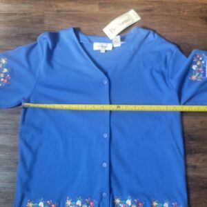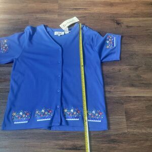 Embroidered Flower box garden Bechamel Grandma shirt button up Blue size M Royal