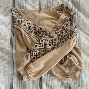Embroidered Free People Pale Pink Cropped Sweater sm