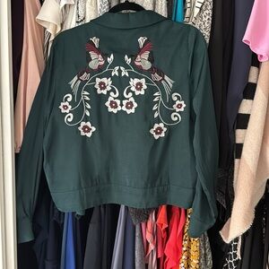 Elegant green women's top featuring intricate embroidery. Perfect for adding a touch of sophistication to your wardrobe. Poly. 21” across bust and 22.5” long.