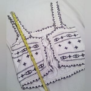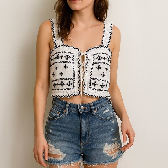 Embroidered Hippie White Black Women's Summer Crop Tie Chest Top