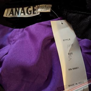 This fun, colorful jacket's elephants are covered with sequins and surrounded by embroidered savanna grassland. The entire jacket, including the sleeves, is lined with purple fabric.