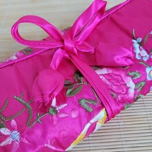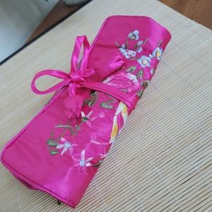 Embroidered Jewelry Travel Bag in Luxurious Black Satin NWT