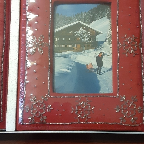 Deluxe Embroidery Stitched Cover Journal and Frame Set NWT RED and SILVER