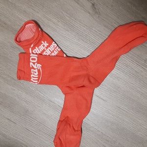 Amazon with logo in white embroidered on one and Black Business Accelerator embroidery on the other. New condition only tried them on for pics. Deep peach hot orange. cozy !!!