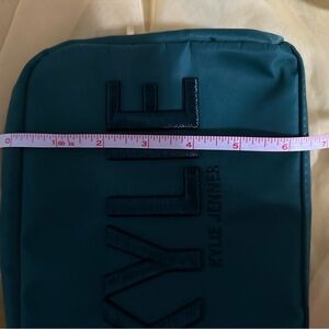 Dark green Kylie bag. Kylie Kardashian. The second photo shows the accurate color of the bag. Add a couple of D rings, a strap, and it would make a cute crossbody purse. This is a gorgeous bag that has never been used. Measurements are shown in the photos.