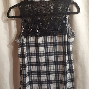 Embroidered Lace Back Plaid Sleeveless Shirt by M Fasis. Black and white button down. Size S.