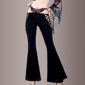Embroidered Lace Up Low Rise Bell Bottom Festival Flares