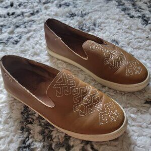 Lovely leather slip-ons by Soludos - the embroidered leather gives a boho vibe, but it could also be midwestern, Earth-goddess or soccer mom. These shoes will support you in any era!