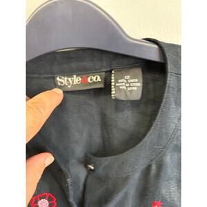 Embroidered Linen Tunic Blouse Top Style & Co. womens 12 black boho cott…