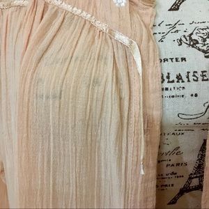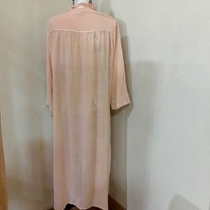 Silhouettes, long, peach, embroidery detail, lightweight, XL robe, button up, floral/ flower details, long sleeves, crinkle look, cotton, ribbon on one side is shorter than the other, please see picture, vintage, cotton. I use fabric refresher spray