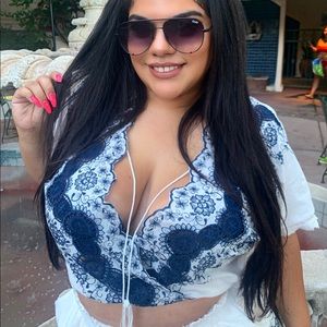 Matching shirt set, only worn once. Super comfortable, Deep V Neck but can be adjusted with tassel tie front.
