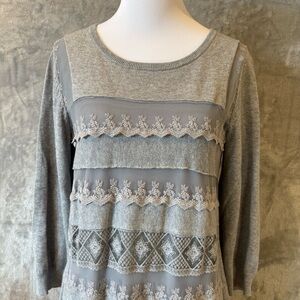 Embroidered Mesh Romantic Sundance Gray Long Sleeve Sheath Dress Wmn’s Sz S