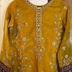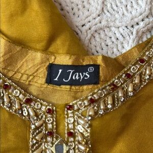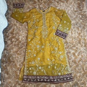 Embroidered Mustard Yellow Kurta with Mirror Accents size S