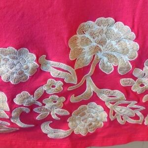 INC INTERNATIONAL CONCEPTS PINK STRETCHY SLIP DRESS with EMBROIDERED BODICE and HEM. SIZE LARGE. This dress is lined, clean, and ready to wear. NO FLAWS. 17" pit to pit. 29" from top of bodice to hem. 25 1/2" width of hem flat. ADORBS!