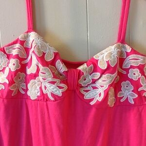 Embroidered PINK Spaghetti Strap MINI DRESS SZ LARGE