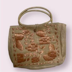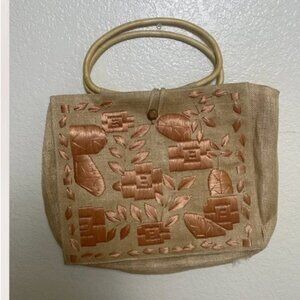 ⭐️ Embroidered Peach Boho Rattan Wicker Picnic Beach Hipster Tote Bag Purse