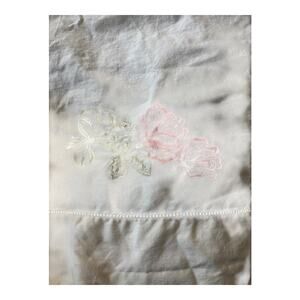 Embroidered Pink Rose Standard Pillowcase Size 19x30 inches