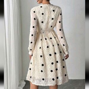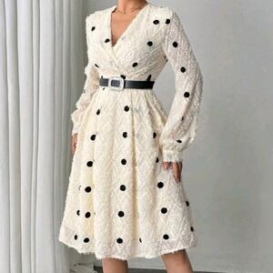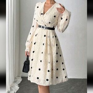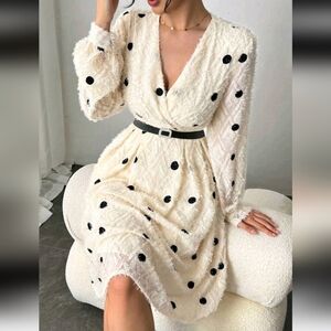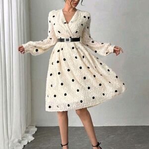 Embroidered Polka Dot Apricot V-Neck Elegant Fashion Women's Dress