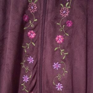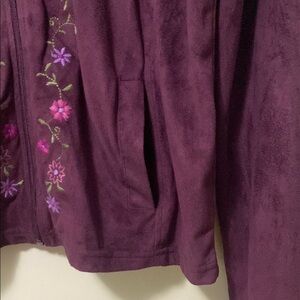 Elegant purple jacket with floral embroidery, perfect for adding a touch of style to any outfit.