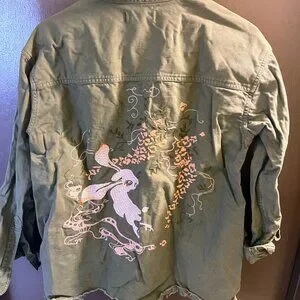 Part shirt, part jacket—this raw-hemmed military style is made to wear allllll the time, indoors and out. The dreamy embroidery (yep, that's a bunny rabbit on the back) was inspired by '70s DIY flair.