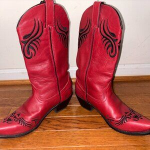 Embroidered Red Leather Western Cowboy Boots Woman Size 8
