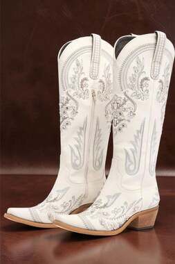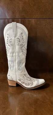 vodvob Rhinestone Embroidered Western Cowboy Boots for Women, Size 8.5 — Cream.