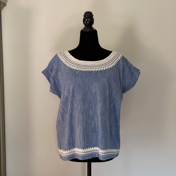 Cute top - never worn. Excellent condition. Boxy cut, scoop neck, beautiful embroidery!