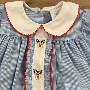 Adorable Rudolph Christmas dress. No notable signs of wear with the exception of a missing button on the back (took photo)