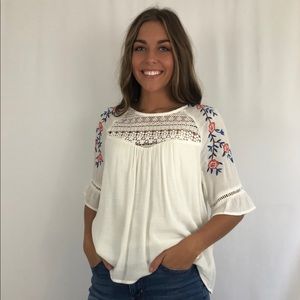 Embroidered Ruffle Sleeve Top π§΅ NEW!!