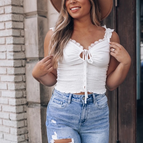 Skirt available in my other listings in sizes S-XL. Embroidered, eyelet top with a stretchy bodice and ruffle through the straps and neckline. Brand new. Boutique.