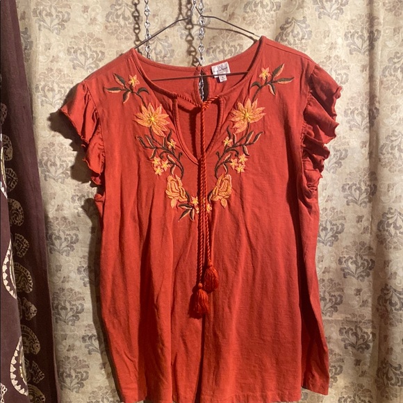 Embroidered Rust Top