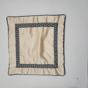 Embroidered Satin Pillow Cover Blue and Beige Chain Link Embroidery 18 x 18 in