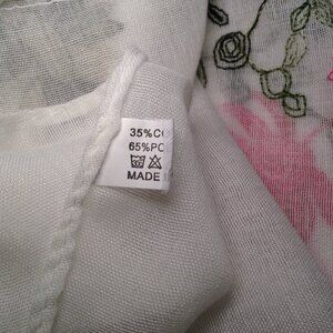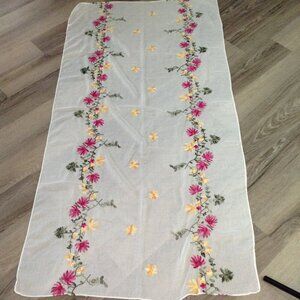Embroidered Scarf/Sarong, Beachy, Traditional, Unique. Cotton/Poly Blend, Chic. Beachy, Bohemian, Bollywood, Rolled Seams, Beautiful! Wear it, Use it as a pretty table runner. Very unique. No visible signs of wear; looks new. 34"x32"