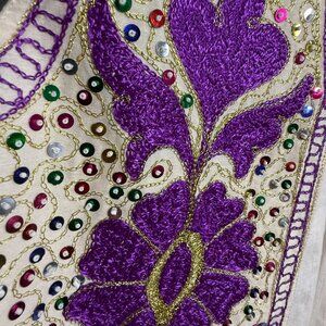 Embroidered Sequins Open Front Jacket Vest Unisex Cream Purple Sleeveless