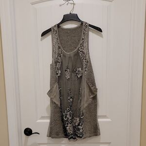 Embroidered sheer lace grey sweater tunic dress. Pockets and free flowing.