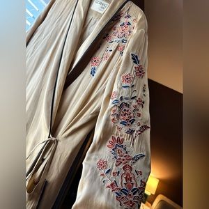 100% silk embroidered silk robe, really beautiful and unique embroidery pattern, nice lining, very good quality. Never worn, just been sitting in my closet