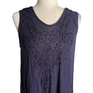Embroidered Sleeveless Sun Dress S-L Navy Blue Cover Up Rayon Round Hem