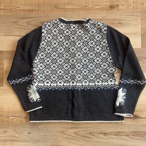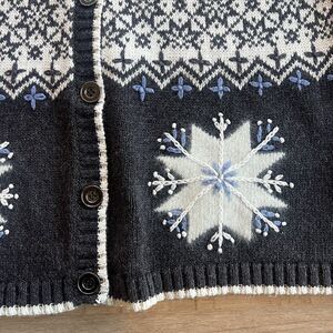 Embroidered Snowflake Holiday Cardigan Sweater VTG Button Ramie SML Sport Size L