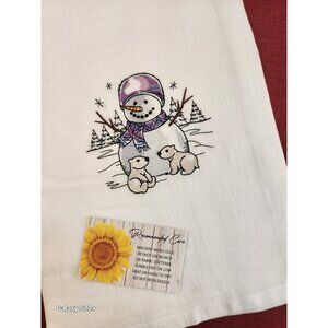 Embroidered Snowman Flour Sack Towel, Polar Bear Tea Towel, Winter Kitchen Decor