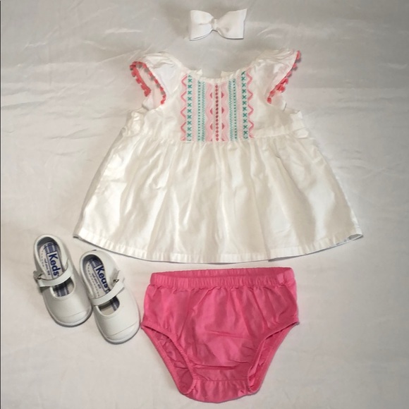 EUC 100% crisp cotton with cap sleeves and two button back closure.