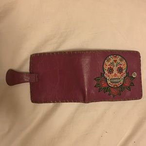 Purple embroidered leather skull wallet. Tons of slots + coin pouch