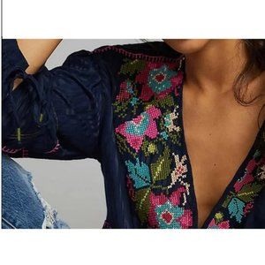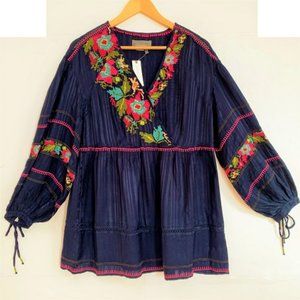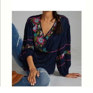 Embroidered Surplice Tunic Blouse by Anthropologie