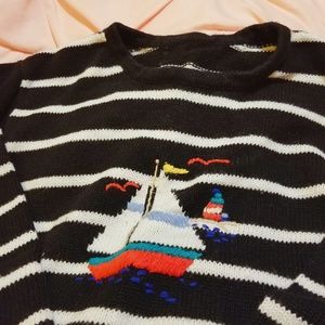 Cute and oversized with stripes! Vintage embroidered sweater that'll look good with a collared shirt or just by itself!