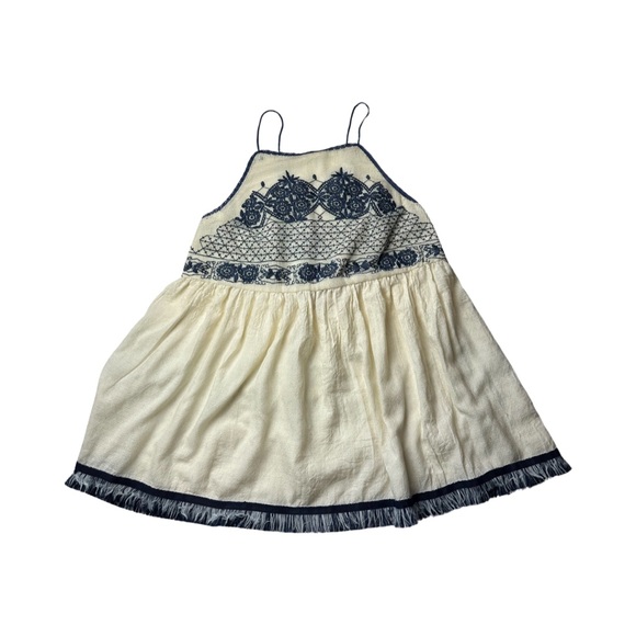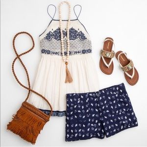 Beautiful top , back out tank , blue embroidery details , string straps . Super cute and unique .