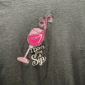 Embroidered t-shirt. Saying on front of shirt is "I don't give a sip". Size Large.