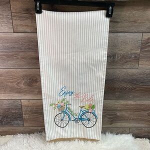 Embroidered Table Runner Blue Beach Bike Spring Basket Flowers Size 70” Length
