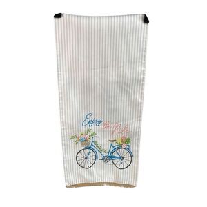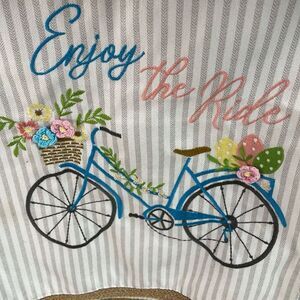 Embroidered Blue Beach Bike with Flower Basket and “Enjoy The Ride”